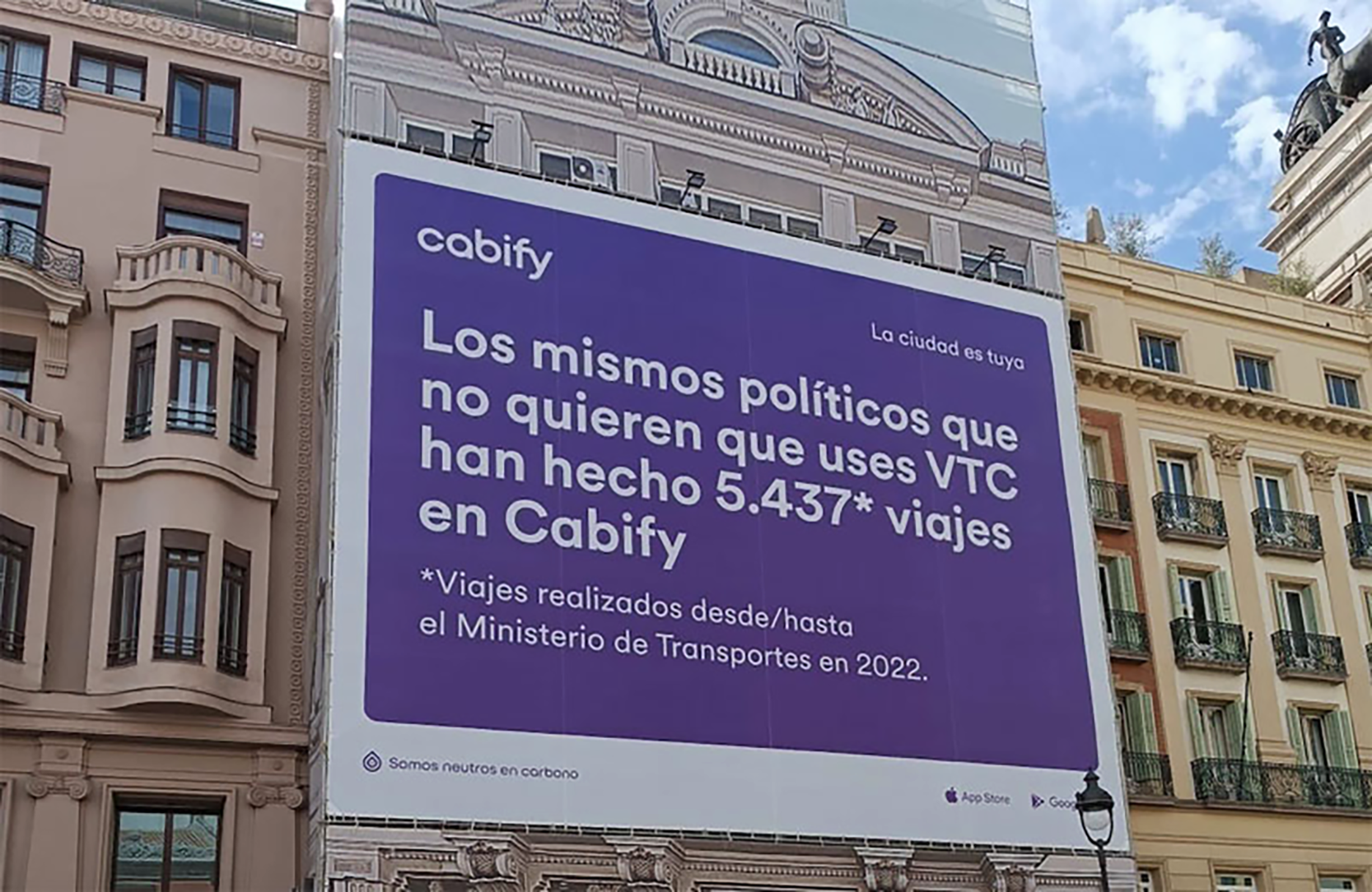 Nos dimos cuenta de que los mismos políticos que querían expulsar a las apps de ride-hailing de Barcelona eran quienes usaban Cabify para ir y venir del Ministerio. Una valla publicitaria en pleno corazón de Madrid y un mensaje en Barcelona dirigido directamente al Ministro. El resto es historia.