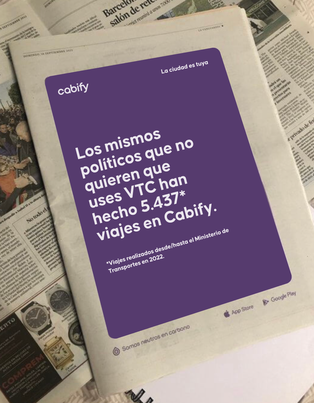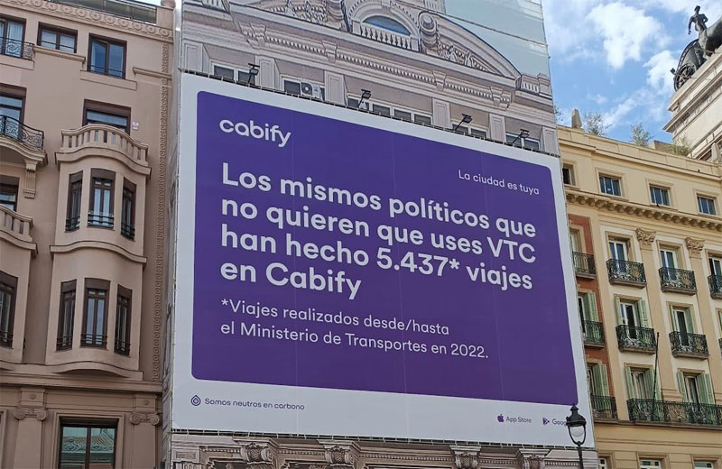 We realized that the same politicians who wanted to kick Cabify and other ride-hailing apps)out of Barcelona were the ones using them to get to and from the Ministry. A billboard in the heart of Madrid and a message in Barcelona aimed straight at the Minister. The rest is history.